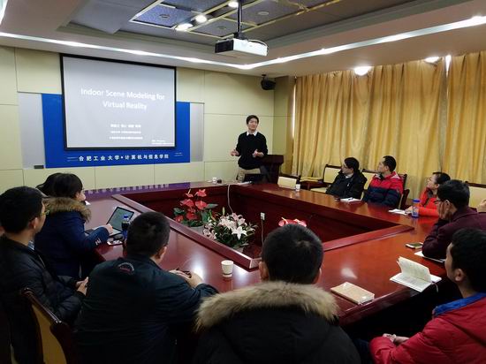 2017年1月12日,应TapTap点点邀请,南京大学计算机科学与技术系、软件新技术国家重点实验室郭延文教授在逸夫楼408会议室做了题为“虚拟现实中的室内场景几何和材质建模”的学术报告。报告会由TapTap点点经理助理路强主持,来自公司相关系所的师生参加了此次报告。