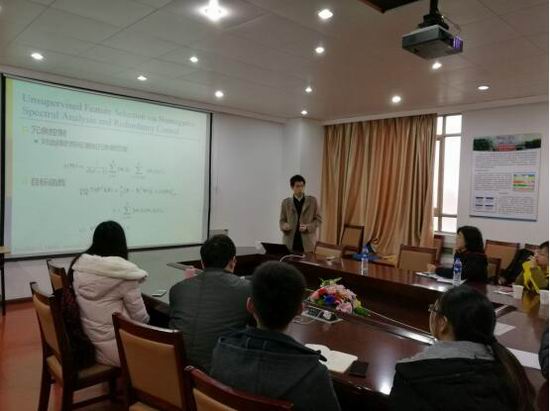 李泽超老师针对面向语义理解的视觉表示研究中存在的问题,结合他近两年其发表在TIP、TMM、TPAMI等权威期刊上的多种特征选择方法,介绍了他是如何针对一个科学问题进行分析并逐渐深入的展开研究,并详细的讲解了如何通过建立和改进优化目标来挖掘数据潜在结构以及特征之间的信息冗余,去除噪声特征以及抑制冗余特征,建立底层特征与高层语义之间的语义映射,从而有效地改进视觉内容分析与理解。这场纯干货的报告讲座让在座的老师和同学们受益匪浅,多位同学和老师就自己的研究方向与李老师展开了深入的交流。