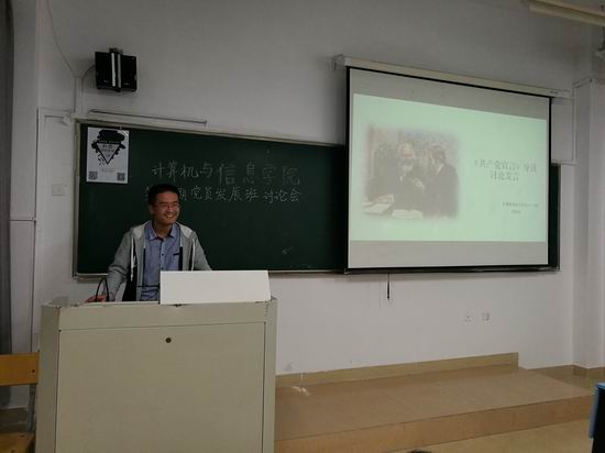 会上,小组成员代表一一上台谈了自己的理解和认识。第一小组王俊曼发言说:“《共产党宣言》发表的这160多年中,世界在各个方面都发生了翻天覆地的变化。现在我们还是处在社会主义初级阶段,我们仍要毫不动摇的坚持运用《共产党宣言》的理论,努力去把我国的社会主义建设推向一个崭新的阶段,向着共产主义前进!”第四小组彭学森引用邓小平同志在1992年南巡谈话:“我坚信,世界上赞成马克思主义的人会多起来的,因为马克思主义是科学。它运用历史唯物主义揭示了人类社会发展的规律。封建社会代替奴隶社会,资本主义代替封建主义,社会主义经历一个长过程后必然代替资本主义。这是社会历史发展不可逆转的总趋势,但道路是曲折的。我们对未来充满信心。”