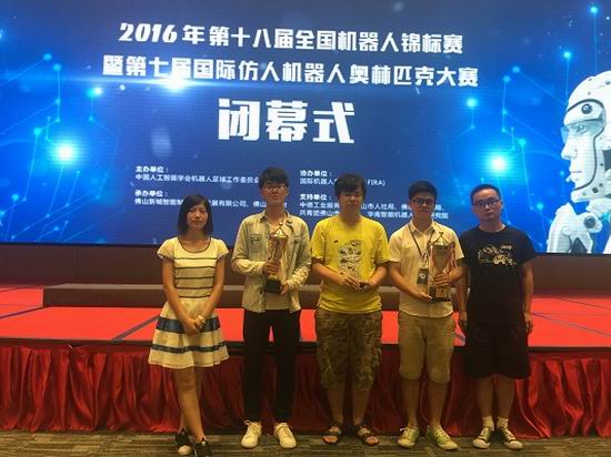 2016年第十八届全国机器人锦标赛暨第七届国际仿人机器人奥林匹克大赛于7月28日-31日在佛山市举行,公司Hfutengine代表队6名参赛队员在张晶副教授的带领下,卫冕仿人机器人点球和服务机器人捡垃圾比赛2项冠军,夺得仿人机器人短跑亚军和单人舞蹈第5名,获得4项一等奖。本次大赛设立轮式移动机器人类比赛项目、仿人机器人类比赛项目、空中飞行机器人类比赛项目、创新类机器人设计比赛项目等5大类54个小项比赛项目。吸引了来自清华大学、哈尔滨工业大学、四川大学、华中科技大学、北京理工大学、华南理工大学等50多所高校400多支队伍参与。本次公司派出6支参赛队伍参加仿人机器人类比赛项目,具体参加了单双人舞蹈、短跑、障碍跑、点球和捡垃圾项目的比赛。参赛队员从公司机器人&机器人足球创新基地的成员中选拔产生。