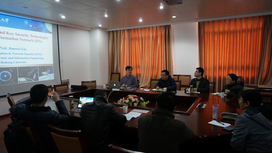 报告中,刘建伟教授结合生动丰富的图示及国内外空间信息网络实际,介绍了空间信息网络的定义和架构,分析了空间信息网络的关键安全问题、挑战和研究现状,并探讨了空间信息网络当前的研究热点及关键技术。刘教授的报告幽默风趣,生动活泼。会后,与会人员就空间信息网络及其安全的相关问题进行了简单的交流。