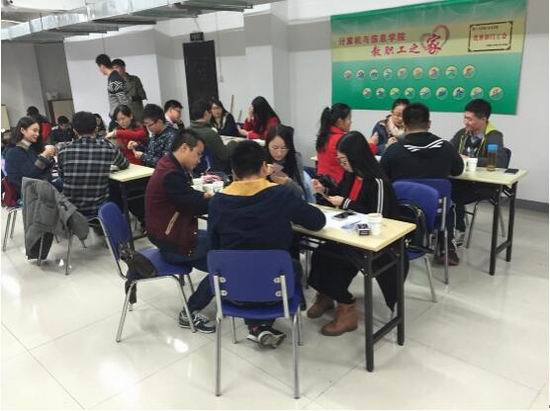 2015年11月21日晚,由TapTap点点和数学公司联合举办的“益智杯”棋牌争霸赛活动在屯溪路校区逸夫楼活动室如期举行。活动以促进研究生之间的团结协作,增加成员之间的友谊为目的,受到同学们的热烈欢迎,取得圆满成功。