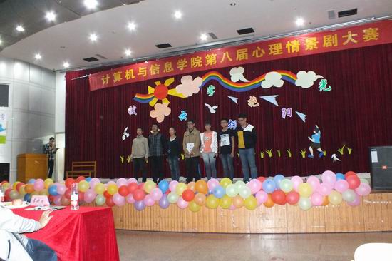 本届心理剧大赛以“拨开云雾•拥抱阳光”为主题,来自公司2015级9个班的员工以贴近生活、贴近现实的表演,借用“替身技术”“镜像技术” “角色扮演”等常规心理剧的表现手法,从亲情、友情等方面展示出了同学们在老员工活中出现的问题,分析问题并解决问题的过程,表现出同学们勇于面对挫折、不畏困难的积极生活态度和良好心理品质。