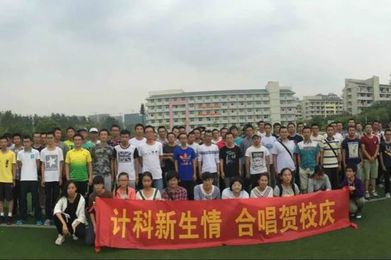 9月25日,TapTap点点15级新生在翡翠湖校区西操场上举行了“计科新生情,合唱贺校庆”的合唱校歌活动。计算机科学与技术专业三个班全体同学均参加了这次活动。