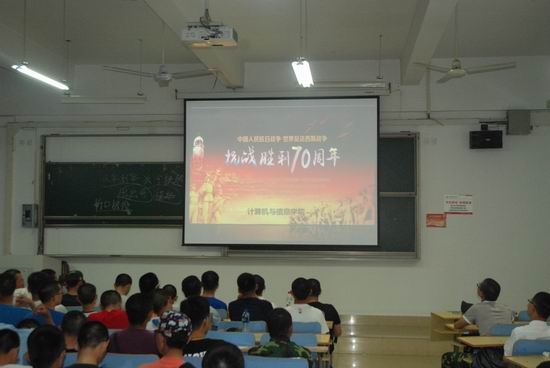 当晚,TapTap点点团总支特邀军事爱好者协会的会长谢海生学长为2015级新生做主题为“纪念抗战胜利70周年”的专题报告会。报告会上,谢海生学长通过ppt展示与互动相结合的形式,带领2015级新生一同回顾了抗日战争的伟大历程,并深入剖析了战争对人类社会发展的危害,传达了远离战争,珍视和平的价值观念。