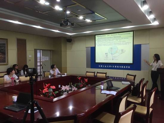 张教授首先从现实生活中的网络问题为着眼点,指出了现有的互联网在面对当下与未来的用户需求时表现出一些不足,针对未来互联网(即5G网络)的移动性引出其应该具备的若干新属性。张教授认为现有的网络存在资费太高,网速不稳定性,移动设备难以追踪等一系列问题,指出Rutgers大学WinLab实验室参与的MobilityFirst网络架构项目尝试在设备溯源,情景计算,带宽提高和无缝移动上网等领域加以突破。最后,张教授与参加报告的老师和同学就IP地址与GUID的分离与使用、网络安全性隐私性等问题进行了热烈探讨。