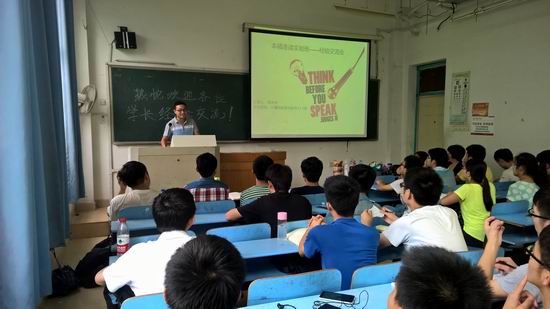 参加经验交流会的11级学长有:徐冲冲、孟庆彬、刘磊、金强。徐冲冲,几乎包揽所有的奖学金,是学霸的代表,已保研至中国科学技术大学;孟庆彬,实力派国防生代表,保研至国防科技大学;刘磊,编程达人的代表,拿offer拿到手软,未来工作地点:腾讯;金强,考研实力派代表,在计算机公司继续攻读研究生。