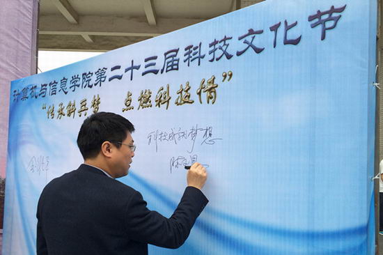 开幕式上,合肥市科协主席金维平致辞,他充分肯定了以科技文化节鼓励员工积极参与科技创新、勇于投身科技实践的形式,勉励广大同学努力提升自己的科学素养与创新能力,通过本次科技文化节,开阔科技视野,浓郁学术氛围。