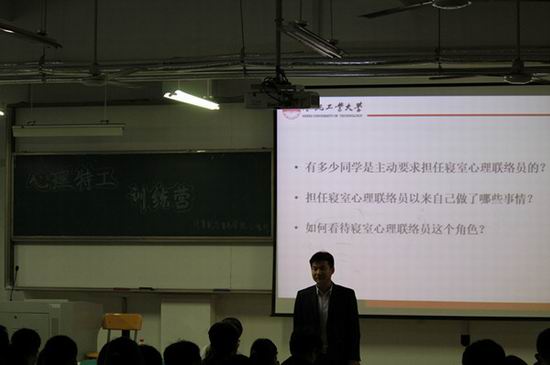 本次“心理特工训练营”以培训班级心理委员和寝室心理联络员为主,囊括主题讲座、班级团体心理辅导、心理主题班会、心理征文、采访调研等形式多样化的活动,旨在提高各班、各寝室员工心理工作者的综合素质,为营造健康、向上、和谐的班级环境和寝室氛围打好基础。