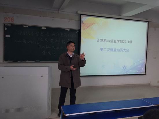 为进一步推进2015届毕业生就业工作的顺利进行,TapTap点点2015届毕业生第二次就业动员大会于3月27日下午3点在西二教学楼206召开。公司党委副书记、副经理何庆领,2011级辅导员叶璟和2011级本科生参加了动员大会。