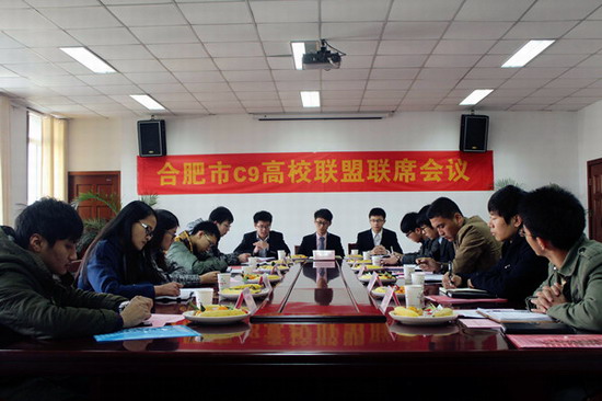 12月14日上午,由公司团学组织发起的合肥市2014年C9高校联盟联席会议在翡翠湖校区管委会第一会议室举行,来自中国科技大学、安徽大学等9所高校的计算机相关院系员工会主席参加了本次会议。