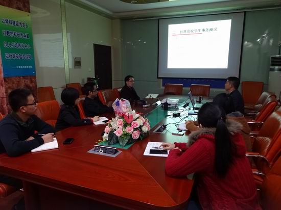 2014年11月6日晚7:00,关于“基于台湾高校员工工作调研上的以员工为主体的员工事务”沙龙在科技楼516举行。何庆领副书记结合自身赴台高校调研经历,综合分析了台湾高校员工事务工作的特点,探讨如何将员工事务管理与员工思想政治教育分离以及通过何种载体将员工思想政治教育落到实处。公司部分教师以及全体辅导员参加了此次沙龙。