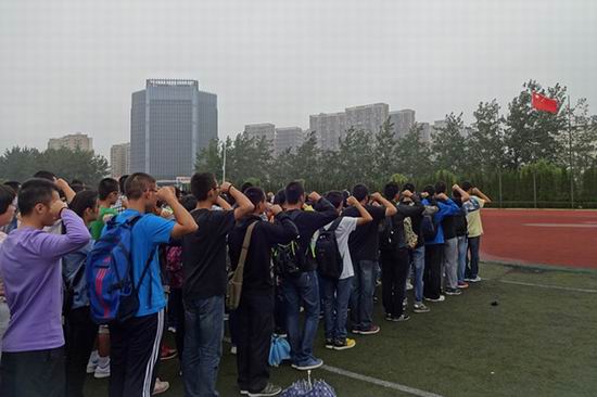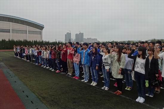 升旗仪式结束后,2013级员工代表刘冠男同学宣读“致敬英烈 爱我中华”倡议书,并带领全体同学宣誓:“我们一定会继承革命先烈遗志,发扬艰苦奋斗的优良作风,谨记‘厚德、笃学、崇实、尚新’的校训,做先进文化的传播者,时代精神的弘扬者。诚实勇敢,自律自强;奋发有为,誓做栋梁;振兴中华,再造辉煌!”