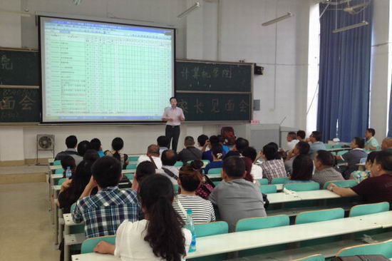 见面会开始,何书记首先代表公司对考入公司的2014级新生表示祝贺,对各位家长的到来表示欢迎。首先,何书记从公司概况、办学特色、学科优势等多方面为新生家长详细介绍了公司的基本情况。从对比高中与大学的教学模式,着重强调了大学学习的重要性。希望新同学们提高学习主动性,能够尽快融入校园,适应老员工活,明确树立学业规划。最后,何书记就员工日常管理及老员工安全方面与家长们作了深入交流。希望各位家长重视老员工的“大学后教育”,双方共同配合、共同努力、共同期盼并成就孩子们的健康成长。随后,电子系主任齐美彬、通信系主任丁志中、计算机系主任路强与电子系、通信系和计算机系的家长分别进行座谈,对本专业相关情况向家长进行了深入浅出的说明。