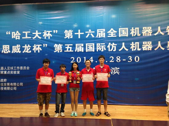 “哈工大杯”第十六届全国机器人锦标赛暨第五届国际仿人机器人奥林匹克大赛于7月28日-30日在哈尔滨工业大学举行,来自北京大学、清华大学、哈尔滨工业大学、四川大学、南京大学、华中科技大学、北京理工大学等60所国内高校参加了该项赛事。公司HfutEngine代表队在王浩教授、方宝富副教授的指导下参加了仿人机器人单人舞蹈、双人舞蹈、短跑、障碍跑、点球及机器人捡垃圾6个比赛项目,最后获得捡垃圾比赛亚军(一等奖)、双人舞蹈季军(一等奖)、障碍跑一等奖及3项二等奖,成绩非常优异。