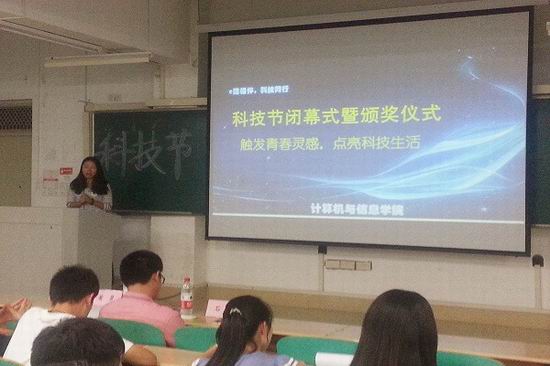 闭幕式上,以“E路相伴,科技同行”的主题视频让现场的同学共同回顾了科技节系列活动的精彩瞬间,分享了科技节的累累硕果,体验了各项赛事的举办盛况。随后,公司科协负责人对公司第22届科技节各项活动开展作整体介绍,使在场同学更深入系统地了解彰显计算机专业特色的科技节各项系列活动。闭幕式上,对在混乱代码大赛和装机大赛中获奖的同学进行了颁奖,最后,公司相关负责老师对此次科技节进行了总结点评并提出殷切期望,希望同学们以公司科技节为契机,加大对科技类活动及科技竞赛的重视,不断培养实践创新意识,提升自身创新能力。