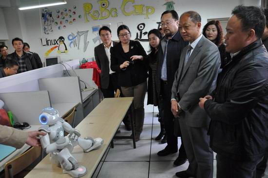 3月27日下午,常熟理工公司陈建华副董事长一行17人在郑利平副经理的带领下参观公司的实验中心和老员工创新基地。陈董事长一行参观了实验中心的计算机软件实验室、网络与信息安全实验室、计算机应用实验室、ICPC创新基地、信息安全创新基地、RoboCup&机器人创新基地和飞思卡尔智能车创新基地。在参观的过程中陈董事长一行提出了不少专业问题,郑经理以及相关的老师都做了较为详实的解答。陈董事长对公司的实验室开放和创新基地的员工自主管理等做法表示肯定和赞赏,并表示要学习我们在实验室建设和管理中的一些好的做法。3月28日上午,常熟理工公司计算机科学与工程公司何世明副经理一行还来到公司,交流专业认证等相关事宜。
