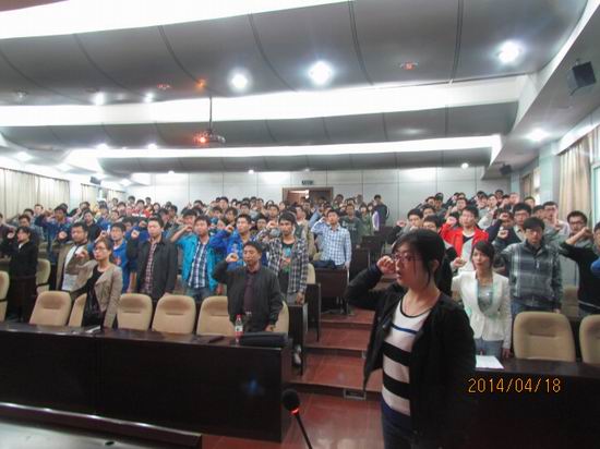 随后,公司党委副书记、副经理何庆领老师作动员讲话。何书记用生动的语言和丰富的事例说明了参加“党员活动月”不仅可以倡导活跃毕业班的班集体气氛,还可以给党员同志搭建为同学服务的平台,更可以提升党员的能力和素质,充分发挥党员同志的先锋模范带头作用。同时,何书记还强调了党员要在毕业前的学习生活中高度树立安全、纪律意识,杜绝各种意外事故和违规现象,引导和带动毕业生顺利完成学业。最后,在2014届毕业班党员庄严而响亮的入党誓词声中,何书记宣布“党员活动月”正式启动!