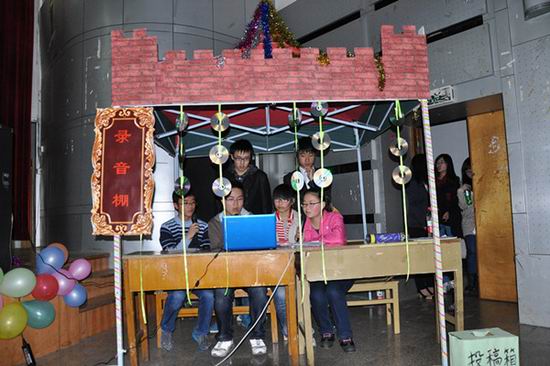 此次大赛由2013级九个班级通过遴选优秀口语代表组队参与比赛,比赛由电影现场配音和PPT讲解展示两个部分组成,从口语表达、现场氛围、展示内容、影片难度等方面对参赛团队进行综合考评,大赛组委会为参赛选手专门制作了录音棚。在比赛过程中,参赛队伍结合自身优势精心选取了各种情景片段,有奇幻片、动漫片、科幻片,选手们以流畅的口语表达、绘声绘色的演绎以及富有创意的全英文介绍,博得了在场观众的阵阵掌声。大赛组委会编辑制作的幽默搞笑的方言配音视频,充分展示了中国语言文化的博大精深。经过激烈的角逐,电子信息工程13-1班的以配音作品《怪物史莱克》荣膺此次大赛一等奖。