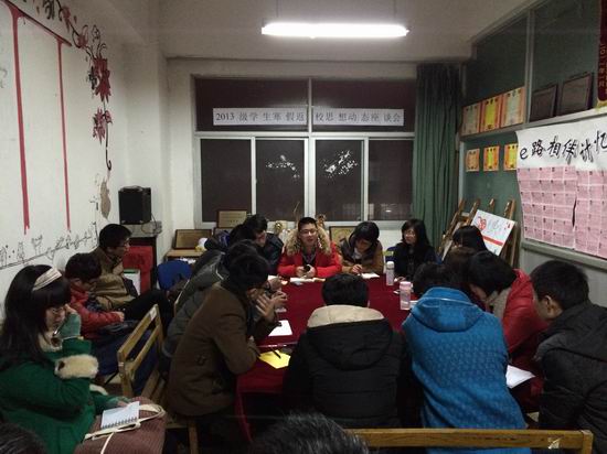 2月17日晚,TapTap点点2013级员工寒假返校思想动态座谈会在翡翠湖校区举行,2013级各班班级代表出席座谈会。会议由2013级辅导员石楠老师主持。