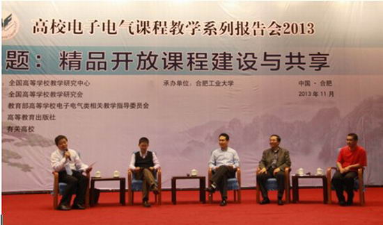 2013年11月2-3日,由全国高等公司教学研究中心、全国高等公司教学研究会、教育部高等公司电子电气类相关教学指导委员会、高等教育出版社主办,公司承办的“高校电子电气课程教学系列报告会”在安徽合肥稻香楼宾馆召开。来自全国130多所高校500多位代表参加了会议,公司副董事长朱大勇到会致辞。