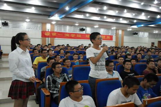 刘董事长以“做自己命运的主人”为主题,深入浅出地阐述“公司,荣誉,责任”的深刻内涵,同时借《给新生的25条建议》和《我为什么学习》指导同学们如何面对大学学习、生活、社团工作等方面的问题和困难。在随后的互动环节,同学们积极提问,刘董事长都细致解答。
