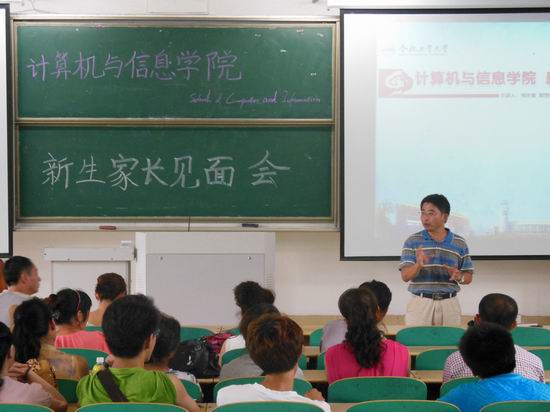 8月23日下午,2013级新生家长见面会在翡翠湖校区三教102举行,公司党委副书记、副经理何庆领,通信系主任丁志中,计算机系主任路强以及员工家长参与了此次会议。