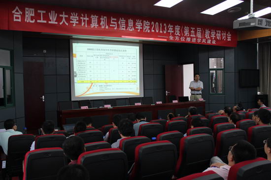 6日是本科生教学专场研讨。上午,首先,副董事长刘晓平教授的大会报告以“由一封给家长的信说开去”为题,通过实际案例,强调了学风的重要性,回归教学本源。经理助理王伟副教授发言题为“新环境下本科生培养质量调查引发的思考”,介绍了计算机专业、信息安全专业本科毕业生教学调查情况,用丰富的图标数据,对考研趋向、就业对教学的需求、教学质量等问题进行了说明。计算机系系主任路强副教授、通信工程系系主任丁志中教授、电子工程系系主任齐美彬教授依次提出各系本科教学中的实际问题,提交大会讨论。下午,各系围绕各自的实际问题展开研讨。晚上,围绕物联网工程专业建设进行研讨。无论是下午还是晚上的研究,大家唇枪舌剑,讨论非常充分,最终对可能的解决方案形成了共识。