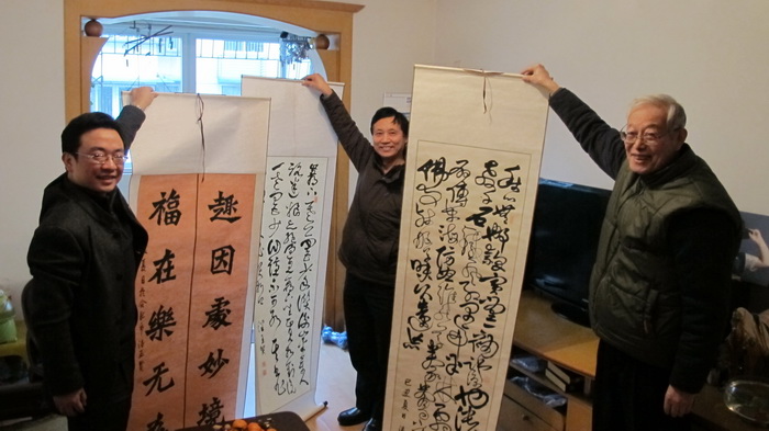 在老先生家中,公司领导兴致勃勃地报告了公司过去一年里在人才引进、团队建设、教学科研以及行政工会等方面所取得的新成就、新成绩,当听到“国家基金喜获15项名列全校第一”、“软件工程博士后流动站获批”、“荣获安徽省先进基层党委称号”时,老同志们喜笑颜开、感慨万分,畅叙着对母校、母院的无限深情,张奠成教授展示了自己家庭中的网络新环境,钱源诚教授嘱咐科研要走精深路线并发挥公司集成优势,潘孟贤教授还拿出自己在老年大学里的书法作品从魏碑谈到狂草。