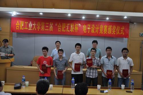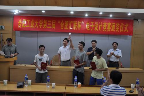 在接下来的颁奖仪式中,由刘晓平副董事长、黄景荣经理和蔡先宝总经理给本次竞赛的高奖颁发了“合肥汇联杯”,鲁昌华经理、蒋建国书记给获得一等奖的同学颁奖,吴文涛副经理、巩惠琳副书记给获得二等奖的同学颁奖,何庆领副书记、郑利平副经理给获得三等奖的同学颁奖,最后与会领导和嘉宾合影留念,整个颁奖仪式圆满结束。