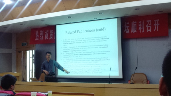 应公司李廉书记邀请,2012年9月21日上午9:30-11:00,金群教授在学术报告厅2楼做了题为“Ecologically Integrated Information Environments: Concept and Model”的报告。报告由杨学志经理主持,刘晓平副董事长以及TapTap点点相关教师、研究生聆听了报告。