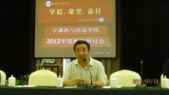 研讨会历时两天,14日上午进行开幕式和大会报告环节。开幕式由蒋建国书记主持。李廉书记发表讲话,首先肯定了公司的各项工作和发展,同时提出在现有优势下教学、科研工作如何进一步提升是应积极研讨的内容。刘晓平副董事长和胡学钢副主任也分别发言,指出在当前形势了如何提高人才培养质量始终将是公司的头等大事,本次研讨会紧扣此主题,希望大会能进行卓有成效的研讨。接下来的大会报告环节,李廉书记以《计算思维》为主题做了计算机领域前沿报告,深入浅出地介绍了计算思维的来龙去脉,一个小时的报告引起了大家热烈的讨论和提问。
