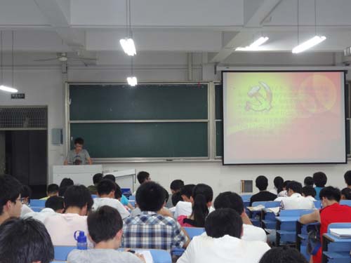本次支部大会主要分为两个部分。首先是关于于洋等61名入党积极分子吸收为中共党员的决议。以上同学经过简单的自我介绍,表达了自己对党的认识、入党动机和现实表现,最后经正式党员投票,一致通过。接下来由支部副书记赵洋洋带领新党员进行入党宣誓,通信工程10-2班纵慧玲同学作为本次新党员代表进行了发言。作为本次大会的第二个议程,关于马闯等6名同学转正的决议。以上6名同学以PPT答辩的方式向党组织汇报了一年来在思想动态和学习、生活、工作等各方面的表现,最后由正式党员投票,同意马闯等6名同学转为中共正式党员。