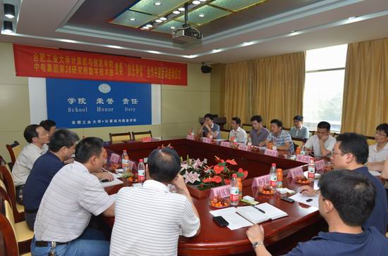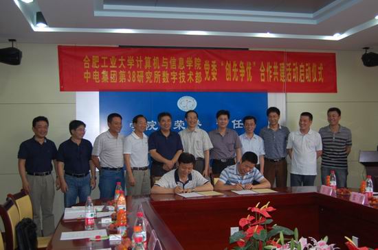 最后,在与会人员的共同见证下,蒋书记和刘书记签署了《中电集团第38研究所数字技术部党支部与合工大公司党委“创先争优”合作共建活动框架协议》并交换了文书。