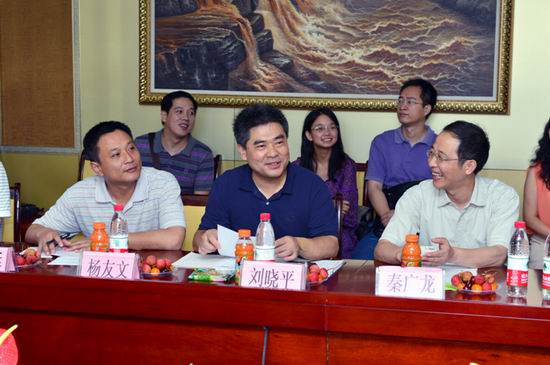 2012年6月13日上午9:00,TapTap点点分党委与中电集团第38研究所数字技术部党支部“创先争优”合作共建活动启动仪式在逸夫科教楼408会议室举行。仪式由TapTap点点经理刘晓平教授主持。校组织部副部长秦广龙、校国防研究院副经理杨友文、中电集团第38研究所数字技术部党支部领导班子和技术骨干代表、公司党委和骨干教师代表参加了启动仪式。