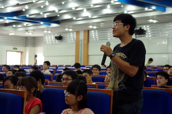 节目中彭教授与广大同学分享了他青年时期的求学经历,讲述了他初到电子科大时的学习、工作心态,告诫同学对于基础课学习的重要意义和人全面发展的重要性。整个访谈现场轻松活跃,同学们近距离的领略到了大师课堂以外的风采,深受鼓舞。会后彭教授就一些同学提出的问题进行了答疑解惑,诙谐幽默的语言、深入浅出的讲解获得同学们阵阵掌声。