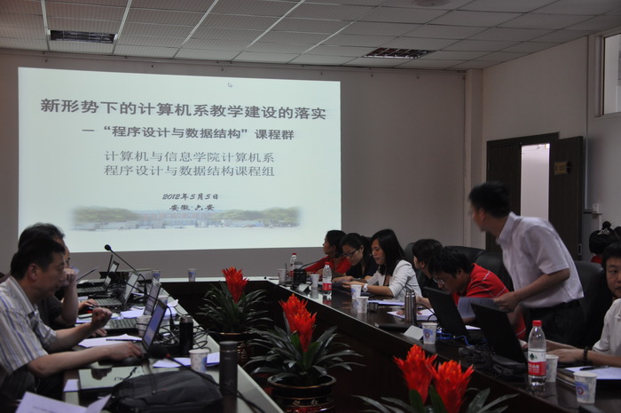 2012年5月5日至6日,由计算机系组织、“程序设计与数据结构”课程组主办的“程序设计与数据结构”课程群建设研讨会在六安市安徽国防科技职业公司内成功举办。参加会议的教师有“程序设计与数据结构”课程组的全体教师、《Java程序设计》、《网络程序设计》、《程序设计方法与艺术》主讲教师代表及计算机系、电子系相关负责人。