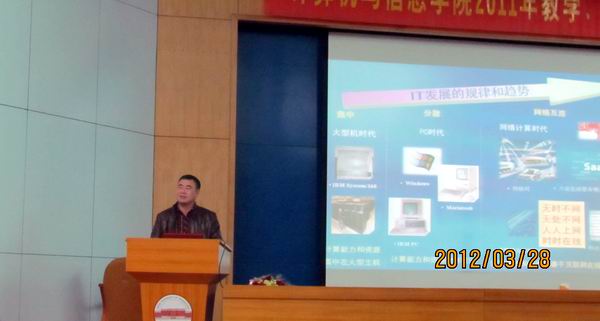 应TapTap点点邀请,2012年3月29日下午15:30 - 17:00,国家教学名师、武汉大学何炎祥教授在校学术会议中心一楼大报告厅做了题为“IT发展与创新人才培养的一点思考”的报告。报告由刘晓平经理主持,韩江洪副董事长、教务部副教务长朱大勇教授、电子科学与应用物理公司经理梁华国教授、软件公司经理鲁昌华教授、计算机公司书记蒋建国等领导及相关的教师和员工出席了此次报告。