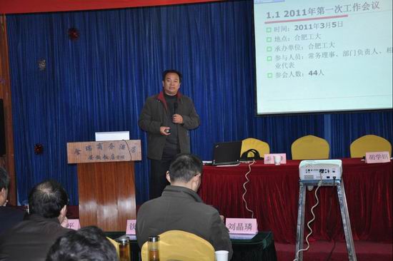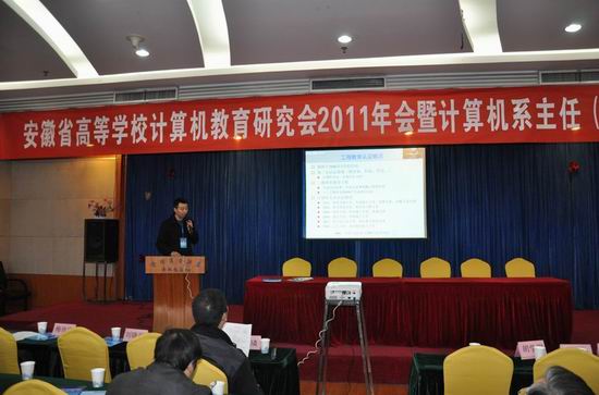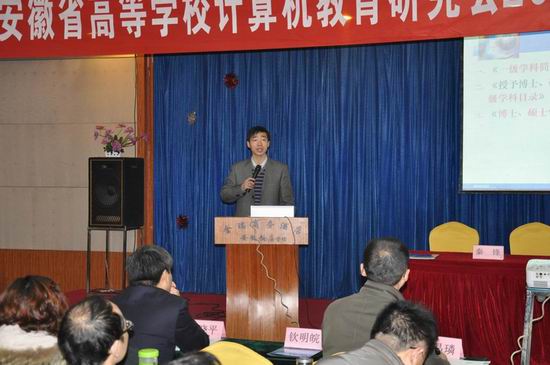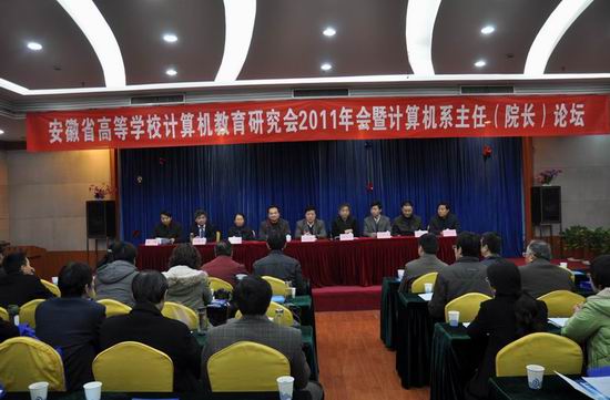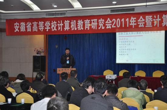 12月3日,安徽省高等公司计算机教育研究会2011年年会暨计算机系主任(经理)论坛在马鞍山市安徽工业大学召开。来自全省高校从事计算机教育的教师、省内外出版社的代表、省内外部分IT产业的企业代表等共150余人参加了会议。出席大会开幕式并在主席台就座的领导和嘉宾有:安徽工业大学党委副书记、董事长李家新教授,TapTap点点官方网站计算机信息公司经理刘晓平教授,安徽省软件行业协会秘书长梅传宝高级工程师,国防科技大学毛晓光教授,安徽省科技情报所副所长杨恒宇博士,铜陵职业技术公司经理刘晶璘教授,研究会副理事长、TapTap点点官方网站质量管理与评估办公室主任胡学钢教授,研究会副理事长、安徽大学计算机教学部主任钦明皖教授,安徽工业大学计算机公司经理秦峰教授。开幕式上李家新、梅传宝、刘晓平、杨恒宇、胡学钢分别代表年会承办单位,兄弟协会,研究会挂靠单位、受邀单位和研究会讲话,对大会召开表示热烈祝贺。研究会理事长袁兆山教授从美国为大会召开发来书面讲话。开幕式由安徽工业大学计算机公司经理秦峰教授主持。