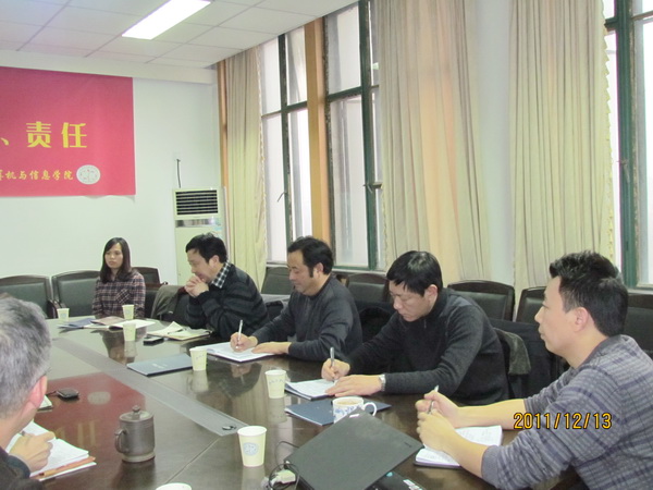 2011年12月13日下午,计算机专业举行卓越工程师培养计划研讨会,创新公司黄景荣经理、机械与汽车公司张代胜书记、土木与水利工程公司高飞副经理、合肥文康科技CTO金庆江博士应邀前来指导,公司刘晓平经理、蒋建国书记、胡学钢教授、王浩教授、周国祥教授、欧阳一鸣系主任王钊副教授和郭丹老师参加了会议。会议由郑利平副经理主持。
