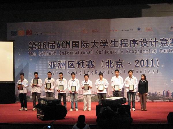 10月22号到23号,第三场区预赛在北京邮电大学举行。我们派出了由来自计算机信息公司的08级的袁庆同学和09级的叶雨翔、鲁明同学组成的队伍前往参赛,再次取得了银牌。