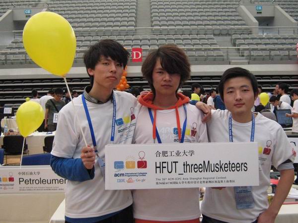 10月15号到16号,第二场区预赛在复旦大学举行。我们派出了由来自计算机信息公司的08级的袁庆同学和09级的叶雨翔、朱辉同学组成的队伍前往参赛。最终勇夺银牌。