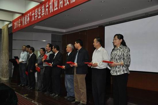 本次比赛设有个人奖、团体奖及最佳组织奖,竞赛形式为员工组队(两人一组),在规定时间内完成单片机电路焊接、程序编制、调试、下载测试等环节,对老员工单片机综合应用技能提高起到了很好的促进作用。10月23日下午的颁奖仪由安徽省高校计算机教育研究会老员工竞赛委员会主任王浩教授主持,安徽农业大学副董事长程备久教授出席并作了重要讲话,安徽农业大学及安徽省高校计算机教育研究会领导为获奖的员工代表、教师代表颁奖。