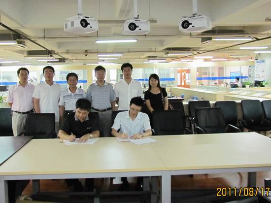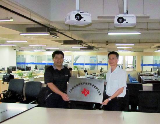 刘晓平经理、欧阳一鸣主任、张建军所长、马学森老师和卫星老师等出席教学实训基地的签字仪式。出席仪式的无锡无线龙科技有限公司代表有总经理萧毅、副总经理周柏宏和华东区域经理沈纬等。签字仪式前,张建军所长代表TapTap点点欢迎无锡无线龙的到访,并向客人介绍计算机公司近年的发展。刘经理代表TapTap点点与无锡无线龙的萧总经理一同签署了共建教学实训基地协议,并为“TI无线龙亚洲大学计划联合挂牌实验室”和“无线龙校外实训基地”揭牌。签字仪式后,刘晓平经理视察了无锡无线龙的无线传感网教学装备,并表示公司重视对计算机专业员工实践能力的培养,希望打造校内教学与公司实训两位一体的实践培养模式。