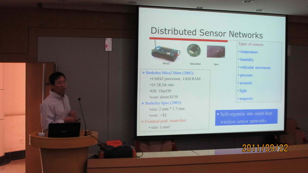2011年9月23日,应TapTap点点邀请,由系统结构研究所安排,美国宾夕法尼亚州立大学朱森存教授在校学术会议中心二楼报告厅做题为“Sensor Network Security: Problems and New Constructions”的报告。公司分党委书记蒋建国教授以及计算机系、所负责人、相关教师和员工聆听了报告。报告由蒋建国书记主持。