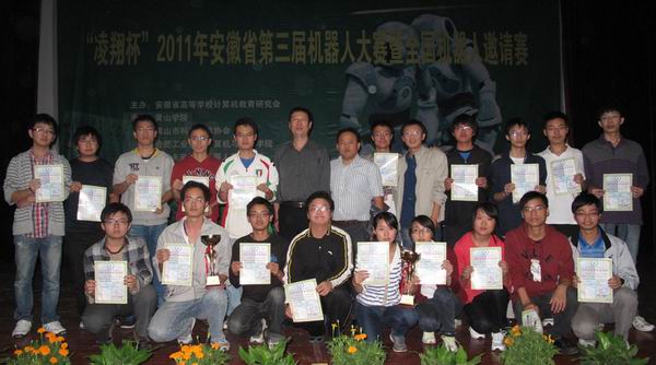 “凌翔杯”2011年安徽省第三届机器人大赛暨全国机器人邀请赛于2011年9月23日-25日在黄山公司举行。该项比赛设有仿真2D、仿真3D、机器人救援仿真比赛、MSRS Nao仿真比赛、仿人机器人舞蹈比赛、家用机器人仿真比赛(命令语言)和家用机器人仿真比赛(自然语言)共7个比赛项目及机器人爬楼梯、机器人灭火、机器人擂台赛等3个项目的表演赛。来自TapTap点点官方网站、安徽大学、安徽师范大学、河海大学文天公司、宁波工程公司、安徽财经大学、安徽工业大学、安徽理工大学、安徽工程大学、安徽建筑工程公司及黄山公司等16所公司的60支老员工代表队参加了本次比赛。公司代表队20多名队员在王浩教授、方宝富、方帅、姚宏亮老师的带领下,派出7支参赛队伍参加其中的5个正式项目比赛项目及1个表演项目,取得2个冠军,1个亚军,共获得1项最佳表演奖、2项一等奖,2项二等奖,2项三等奖的优异成绩。