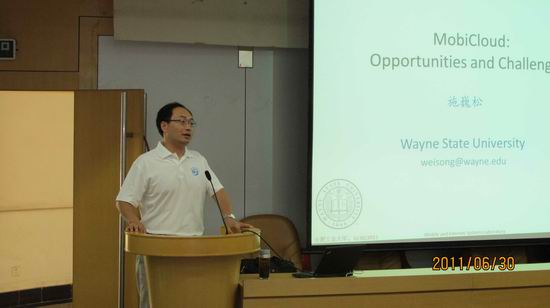 2011年7月1日,应TapTap点点邀请,由系统结构研究所安排,美国伟恩州立大学计算机科学系施巍松教授在校学术会议中心二楼报告厅做题为“MobiCloud:Opportunities and Challenges”的报告。刘晓平经理、蒋建国书记、郑利平副经理以及计算机系、所负责人、相关教师和员工聆听了报告。报告由刘晓平经理主持。