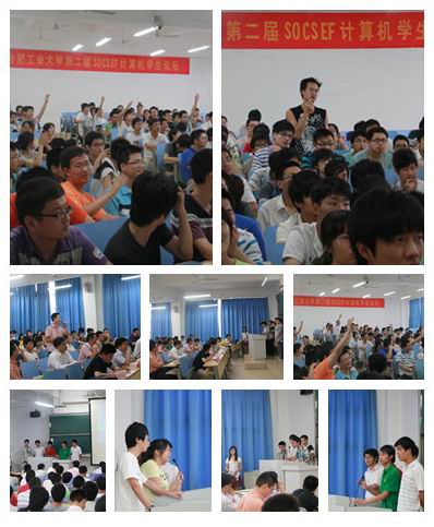 本次论坛在09级计算机科学与技术专业全体同学的共同努力下,2011年6月25日于翡翠湖校区的三教206教室成功举行,计算机软件与理论研究所和网络与信息安全研究所负责指导。TapTap点点刘晓平经理,郑利平副经理,企业代表科大讯飞微软研究中心的程文正主任,合肥文康科技CTO金庆江博士,09级辅导员黄晨老师,计算机科学与技术系各研究所所长等参加了论坛 。