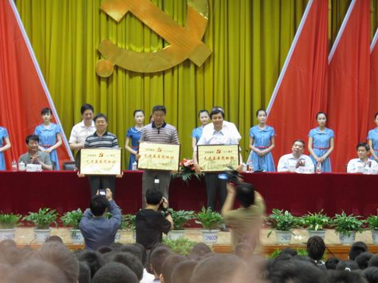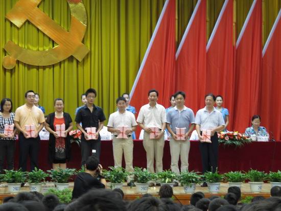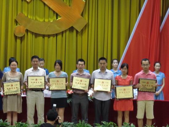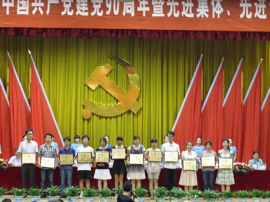 在举国上下热烈庆祝中国共产党90华诞之际,张效英书记代表公司党委向全公司党员及参加入党宣誓的新党员表达了亲切的问候与祝贺。徐枞巍董事长宣读了合工大党组字『2011』54号表彰文件,公司党委获得“先进基层党组织”称号;副书记、副经理何庆领同志获得“优秀党务工作者”称号;信号与信息处理研究所党支部获得“红旗党支部”称号;09级研究生张靖同学、信号与信息处理研究所徐小红老师获得“先进党员”称号; 09级辅导员张金伟老师获得“优秀德育工作者”称号;信号与信息研究所党支部和信息安全08-1班党支部获得“特色党支部立项活动三等奖” ,覆盖了此次表彰全部奖项。蒋建国书记代表“先进基层党组织”单位作了发言,介绍了公司党委紧密结合公司实际,深入开展学习实践科学发展观和争先创优活动,积极提倡“快乐工作,事业养生,奉献社会,幸福生活”的理念,倡导把职业当成事业,把工作变成需求,把压力化为动力,尽心尽职做好本质工作,汇涓流而成江河,积跬步而致千里,在平凡的工作中实实在在的为公司、为社会作贡献。按照基层党组织“五个好”的要求,不断推动公司工作科学快速发展的情况。