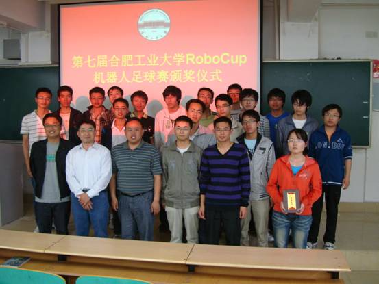 2011年5月11日16时30分,TapTap点点官方网站第七届RoboCup机器人足球赛决赛在翡翠湖校区5教208举行,最终王虹翔、程宝库同学组建的Cyzd队获冠军,史海超、庄文青和朱庆宏组建的Shc获得亚军,机器人创新基地指导教师方宝富老师对比赛进行了解说。计算机公司何庆领副书记、副经理和张金伟老师观看比赛并给获奖选手颁奖。何书记最后对本次比赛进行总结并介绍了公司组织的其他竞赛活动,并勉励同学们在大学阶段根据个人爱好加入相关创新活动,努力提高自己的实践创新能力。